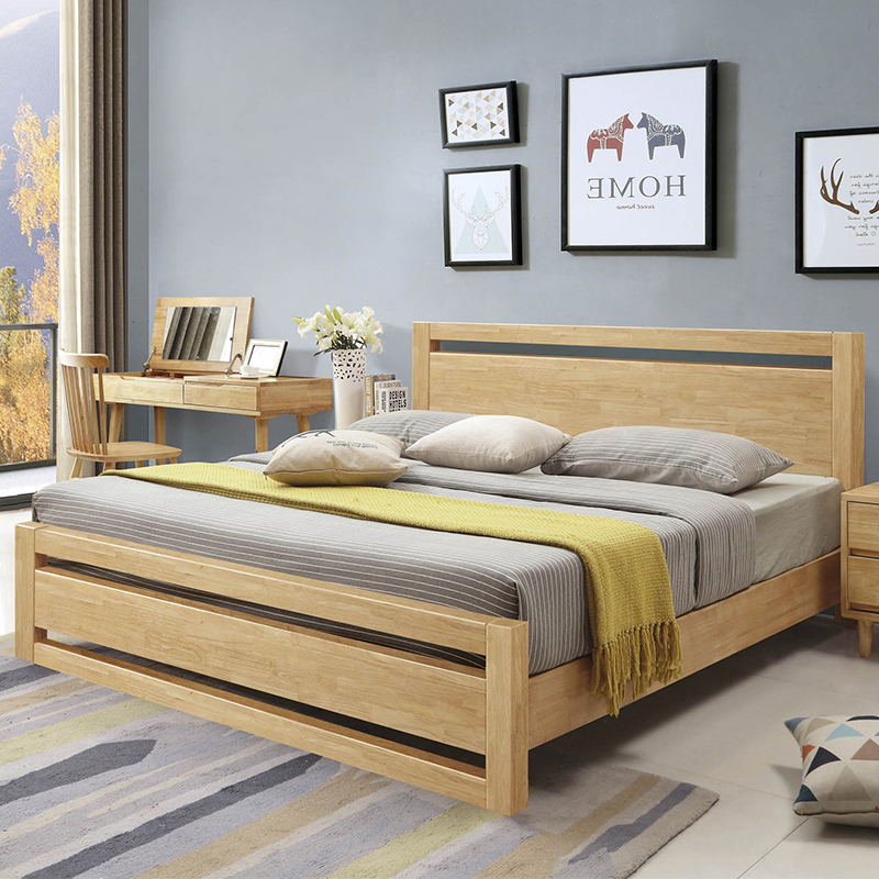 現(xiàn)代簡(jiǎn)約雙人床實(shí)木床 花好月圓 w02#-180