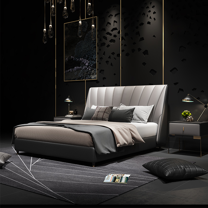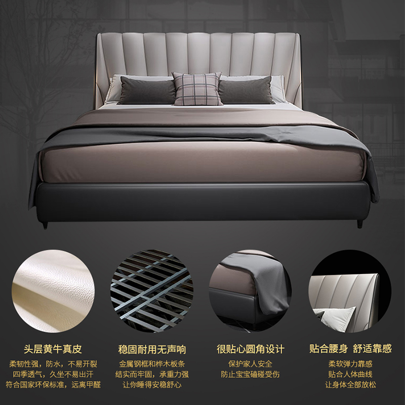 現(xiàn)代簡約 頭層真皮軟床 馨雅韻景 6601