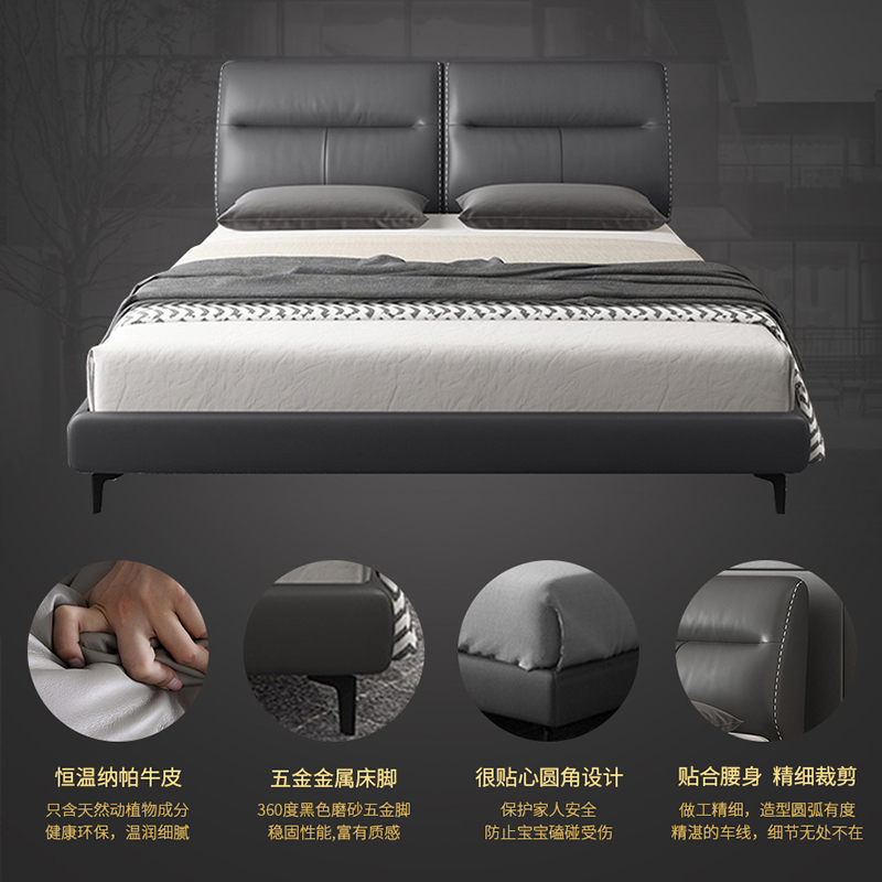 輕奢風(fēng)格 頭層真皮軟床 真皮世家 8126