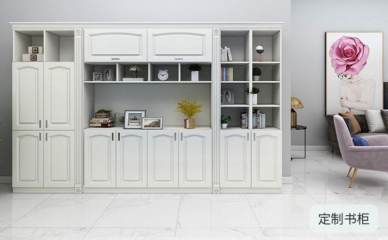 依據(jù)空間大小,選擇單組、雙組或三組書柜,按照需要排成一字形、L形或U形。如果書柜還用于部分展示,放置相框、影集、畫作或者藝術(shù)品等,可定制稍厚的書柜。